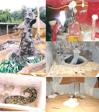 It was learnt that the secret of the existence of the shrine was blown open when a part of the fence erected round it collapsed, exposing some of the bizarre statues within the compound.