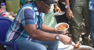 While on his way to Oke-Ako Ekiti yersterday’s afternoon, Governor Fayose stopped his convoy to buy beans from a beans seller aka Iya Elewa who he interacted with, and then he helped himself with some of her beans and also prayed for her.WHAT DO YOU THINK OF HIS ACTIONS?