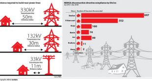 Onome Jackson The minimum distance that must be maintained between properties and electric power networks. According to the law, the required setback distances are as follows: For 0.415KV lines, a minimum of 6 metres must be maintained between a building and the center line of the overhead conductors. For 11KV lines, the distance should also be no less than 6 ...